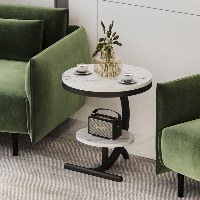 Luna Side Table Marble 2 Shelf Bedside Sofa Table Round (White)